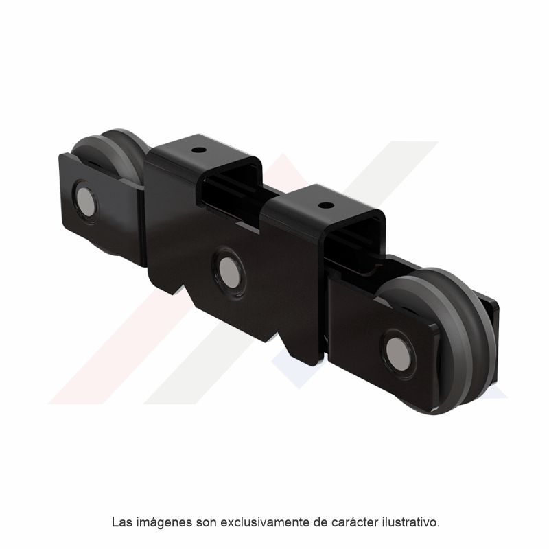 Carretilla europea tipo tandem con rodajas de nylon, para línea corrediza de 3”. Peso Máximo 80Kg - 40Kg por balero