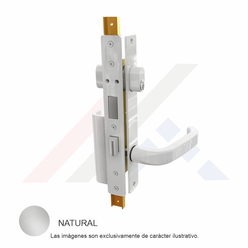 Chapa jaladera manija Herralum, con cilindro llave-llave. *Incluye juego de llaves, contra para pasador y tornillería.
