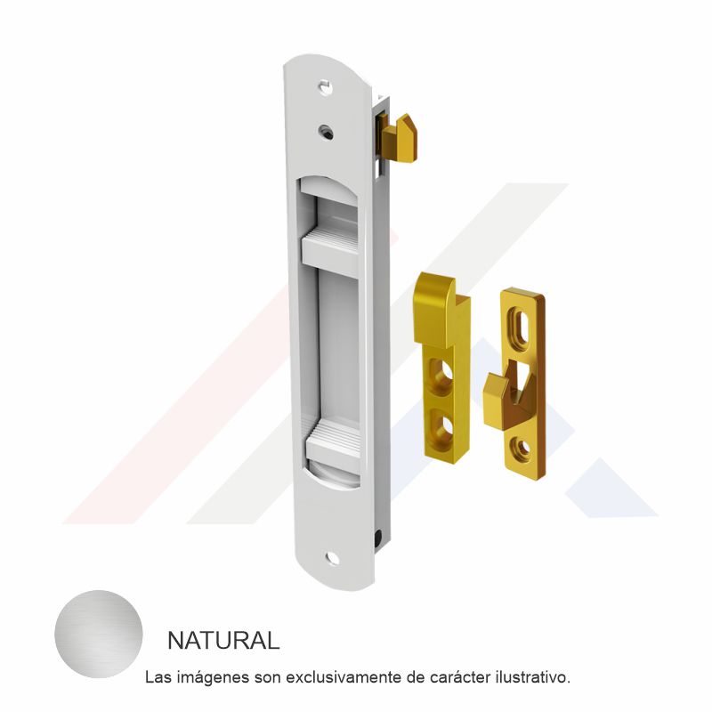 Jaladera embutida con gatillo y contra, tipo automática, para serie corrediza 70 y 100 de Eurovent Cuprum y línea corrediza tradicional de 3”. *Incluye tornillería.