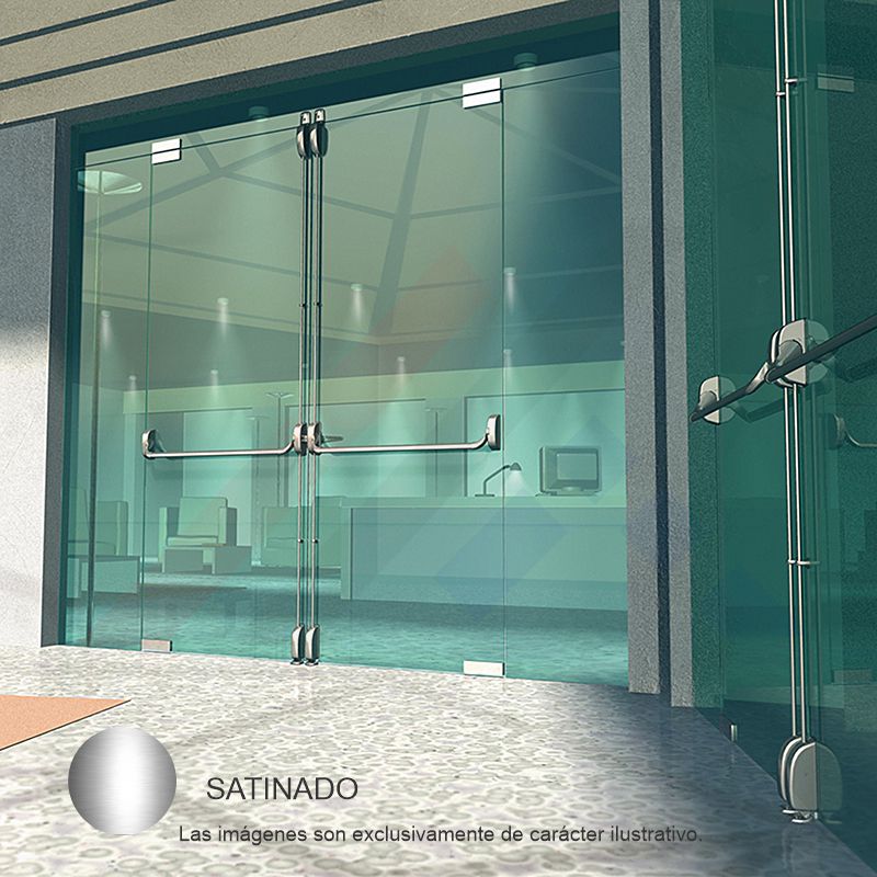 Sistema de barra antipánico vertical con pasadores superior e inferior, para puerta sencilla y doble de vidrio templado; al ser un producto “tipo universal”, su instalación puede ser derecha ó izquierda. Peso Máximo Peso máximo de puerta: 200kg Ancho Máximo Ancho máximo de puerta: 1.32m Alto Máximo Altura máxima de puerta: 2.50m Espesor Para cristal de 9 a 12mm de espesor
