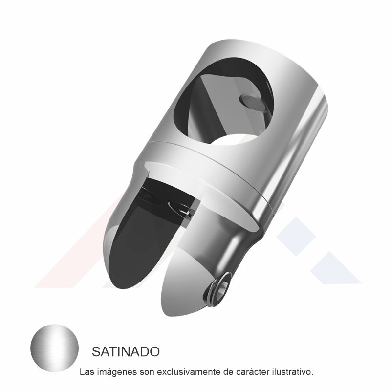 Conector ajustable vidrio a tubo de 19mm de diámetro con atrape movible, abierto en ambos lados, por lo que se puede instalar a lo largo del tubo. Espesor Para cristal de 9 a 12mm de espesor