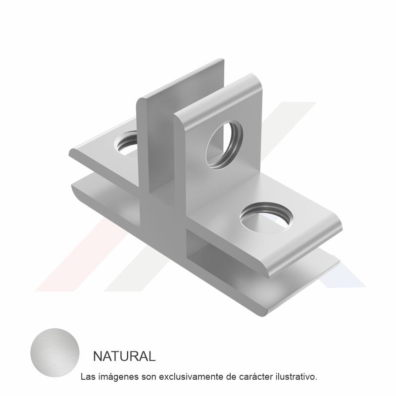 Conector “T” de aluminio, compatible con opresor 2109. El vidrio no requiere perforación. *No incluye tornillería. Espesor Para cristal de 6mm de espesor