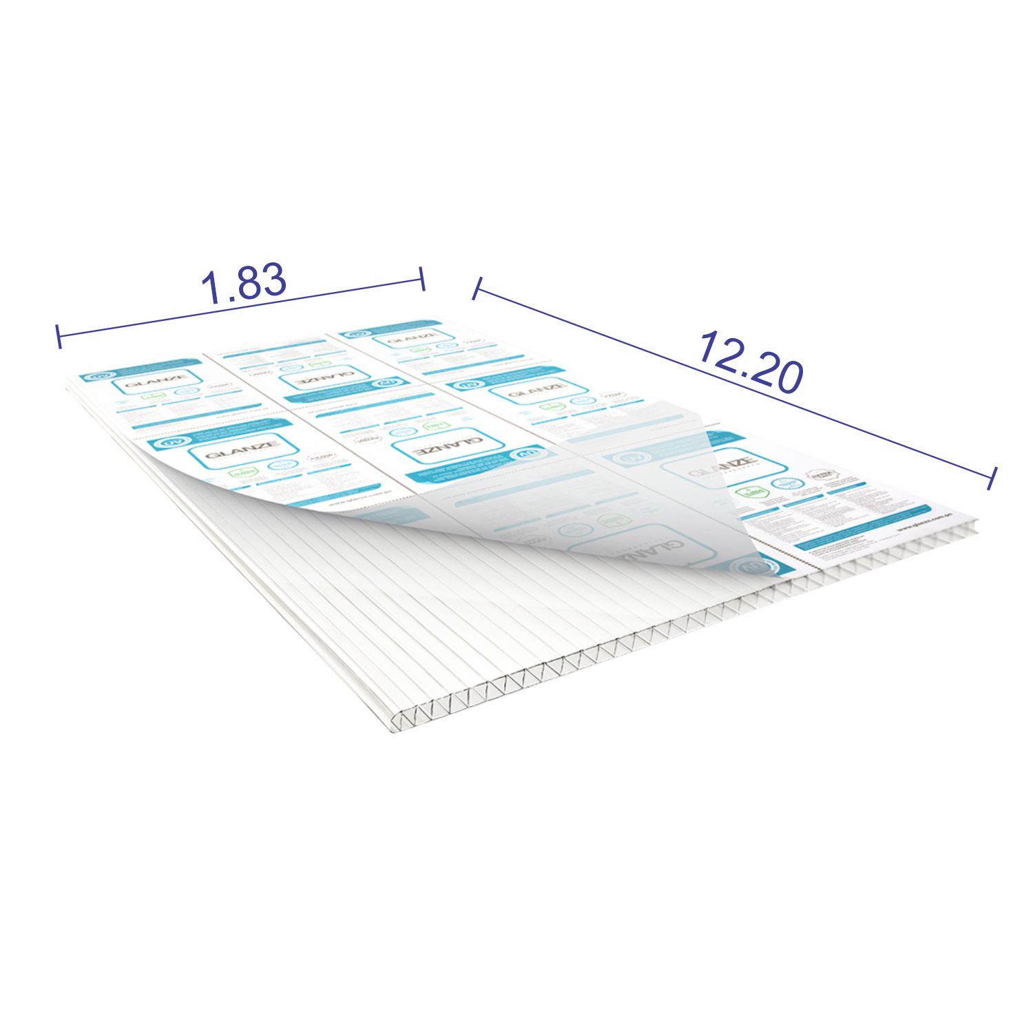 Policarbonato alveolar de 6mm de espesor, fabricado con materia prima 100% vírgen. La hoja de policarbonato Glanze combina las propiedades de aislamiento térmico, alta transmisión de luz y una gran resistencia al impacto, además puede ser cortada a medida y curveada en frío. Se trata del mejor candidato para proteger tus espacios de la radiación solar y evitar el amarillamiento del material, debido a su capa UV co-extruida que actúa contra los rayos solares.t Perfecto aislamiento: Ideales para condiciones ambientales extremas. Súper brillante y transparente: Alto nivel de brillo y excelente paso de luz. Amplia variedad: Coloridas alternativas para cualquier aplicación. Larga duración: Excelente protección UV y garantía de 10 años bajo una radiación igual a 8IUV. Flexibilidad: Una lámina puede ser perfectamente doblada en frío en dirección longitudinal. Los radios de curvatura varían según el espesor de la lámina entre 750 y 1500mm.